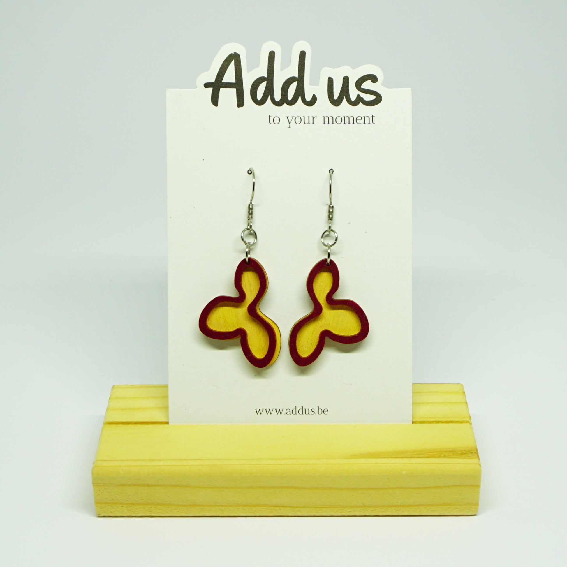 Gemaakt uit hout, 1mm dik en roestvrij staal.